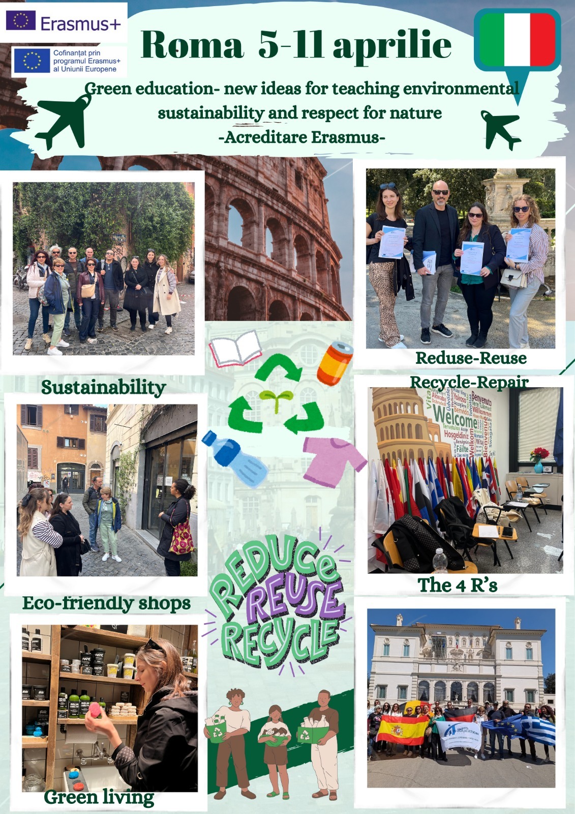 - 3 profesori învățământ gimnazial la cursul de formare ”Green Education: New Ideas for Teaching Environmental Sustainability and Respect for Nature”, Roma - Italia